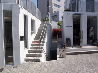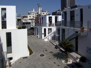 建物はひな壇状のヴォリュームで「山」、通りが「谷」のような状態になっていて、空へ向かって広がっていく形状となっている。各店舗への階段や棟と棟の間の狭さにより路地の中にいるような感じ、と書きたいところだけど中央の通りが広すぎるのと、ひな壇状のヴォリュームのつくり方によっていわゆる路地的、もっといえばアジア的なゴチャゴチャ感の魅力はなかった。いったいどうしたかったのかよくわからなかったけど、どちらにしてもうまくいってない感じ。白い建物の感じはすごくよかったけど、縦スリットの開口部は通常のそれ以上のものにはなっていなかった。中央の通りの広さは法的な延焼ラインかなぁ?わかんないけど、もっとギュッと詰まった感じにした方がよかったんじゃないかと。